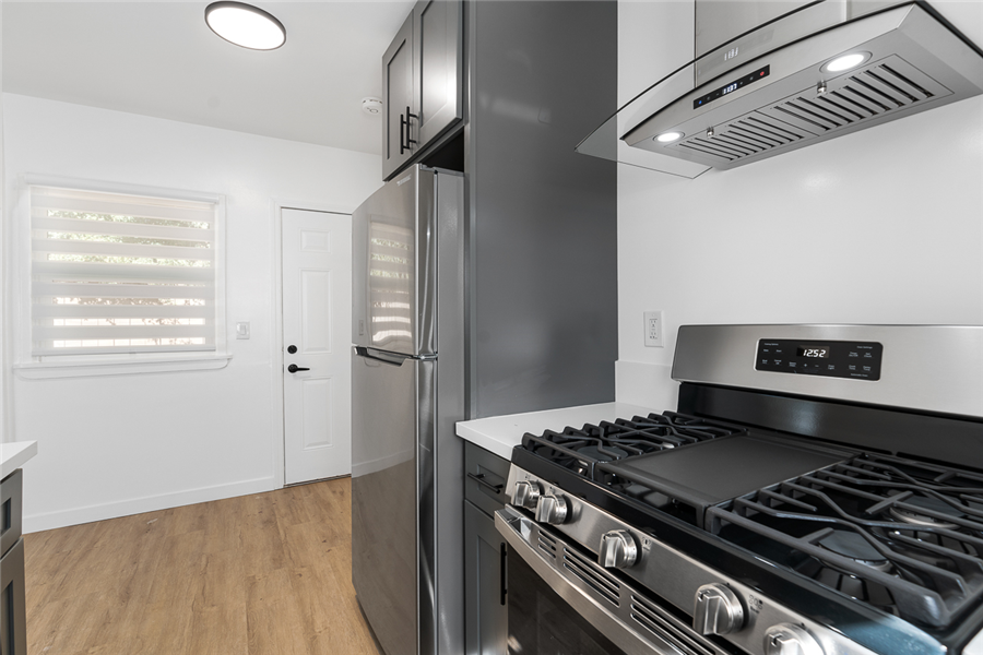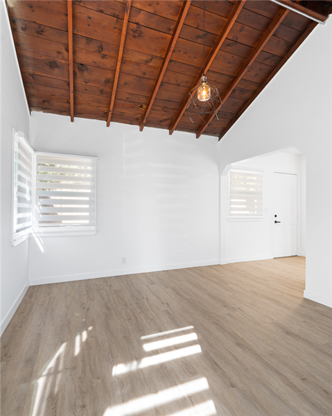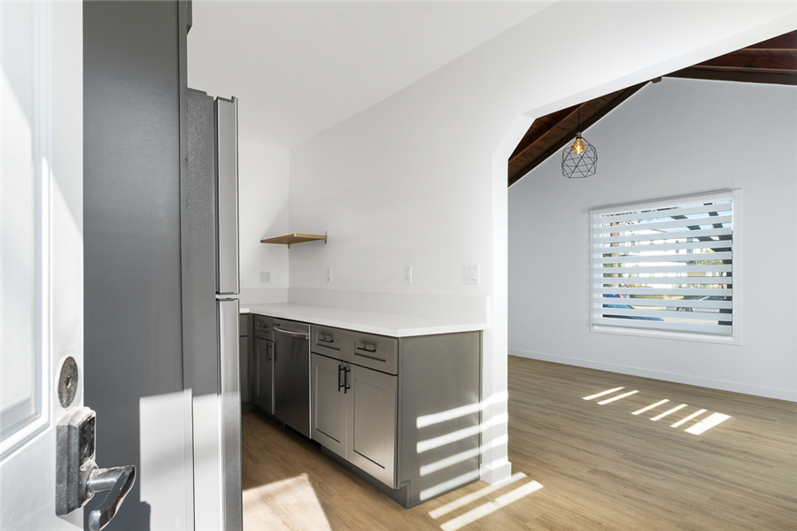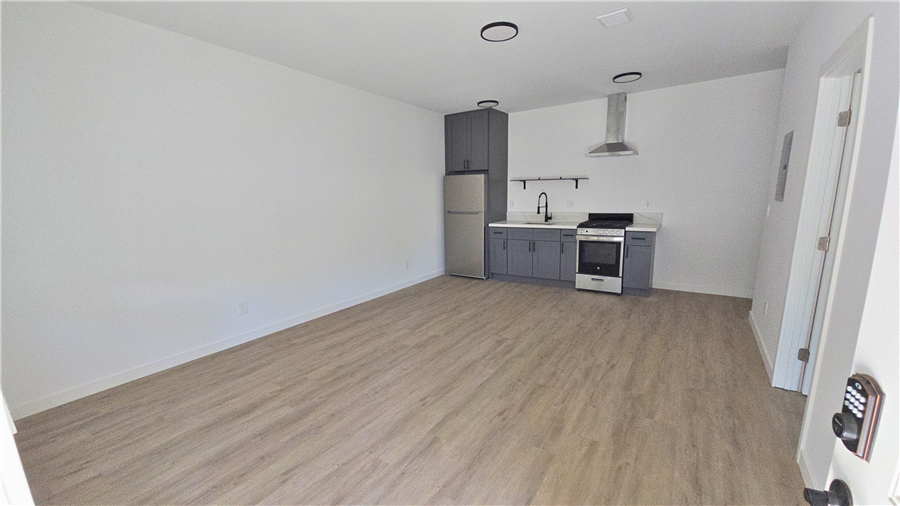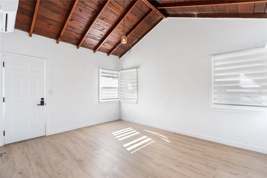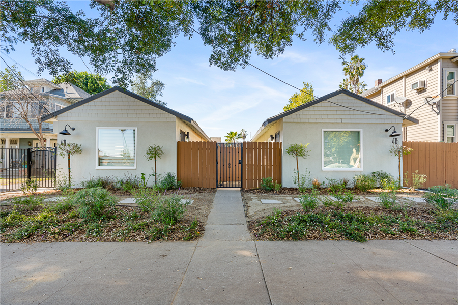 411-417 N Euclid is a single story 10 units apartment. The property was built in 1950 and has been completely renovated with permits in 2022-2023. It consists of 3 single-story buildings and situated on a large ±11,627sf R3 lot. The property has been completely renovated with permits (9 out of 10 units are fully upgraded), and offers an efficient mix of nine 1bedrooms, and one studio unit. Each unit is unique to its vaulted ceiling layout with most units having its private patio. All the upgraded units have undergone a top-to-bottom renovation with full electrical and plumbing upgrades (plumbing upgrade in unit), new high durability wood vinyl and tile flooring in bathroom, new windows throughout, in-unit combo washer/dryer, state of the art mini-split HVAC systems, new kitchen with quartz kitchen countertop and new kitchen cabinets and stainless-steel kitchen appliances (gas range, dishwasher, and refrigerator), and new bathrooms with new vanities, toilets, bathtubs, and name brand fixtures. 411-417 N Euclid units are unique due to its high ceiling and many charming characters such as higher ceiling and large kitchen.