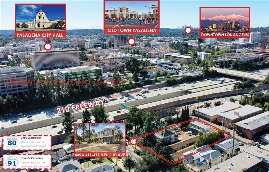 Growth Investment Group California is proud to offer 405 and 411 N Euclid Ave, a very attractive 15-unit semi value-add investment property only several blocks north of Old Town Pasadena. These 2 properties offering provides a very attractive going-in ACTUAL CAP Rate of 5.35% and Proforma CAP Rate of over 6.30%. It sits on large RM-36 zone lot which should allow additional 5 units (buyer to verify). The properties consist of 411-417 N Euclid Ave which is a 10-unit single story mid-century modern style apartment, and 405 N Euclid Ave, a 5-unit (2 are brand new ADUs) 2-story craftsman style apartment. The property offers strategic location near the Old Town Pasadena, and Rose Bowl area.