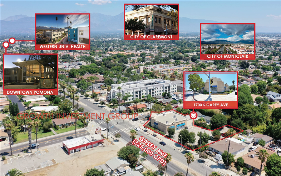 Positioned at the hard corner of Garey Avenue and Franklin Avenue, this property boasts superior visibility from both streets and benefits from a robust traffic count of approximately 25,000 vehicles per day (VPD), driving exceptional exposure for customer-facing businesses.